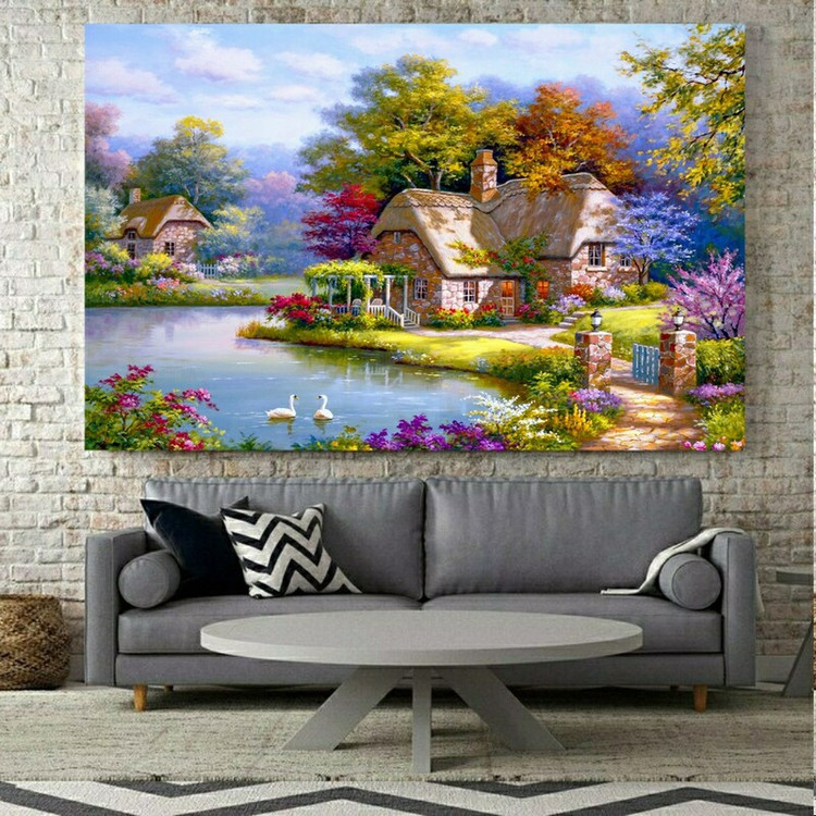 تابلو بوم طرح کلبه در طبیعت آرام